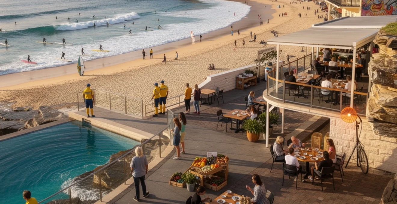 L’emplacement de Bondi Beach au cœur des Eastern Suburbs de Sydney confère à cette plage un statut privilégié. Entourée de quartiers résidentiels huppés comme Bellevue Hill, Vaucluse et Double Bay, Bondi profite d’une clientèle locale aisée qui fréquente assidûment ses établissements et participe activement à la vie communautaire. Cette démographie particulière a façonné le caractère distinctif de Bondi, où coexistent harmonieusement établissements de luxe et ambiance surfeur authentique.
